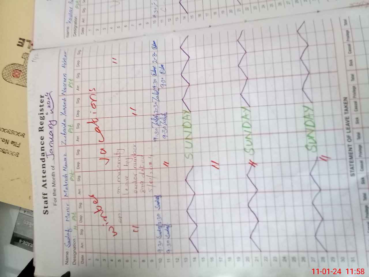 | CNIC | Full Name | Designation | R/C | Absence During Last Calender Month |