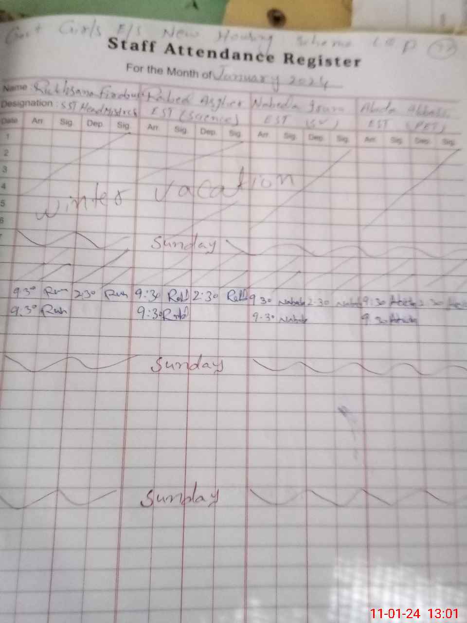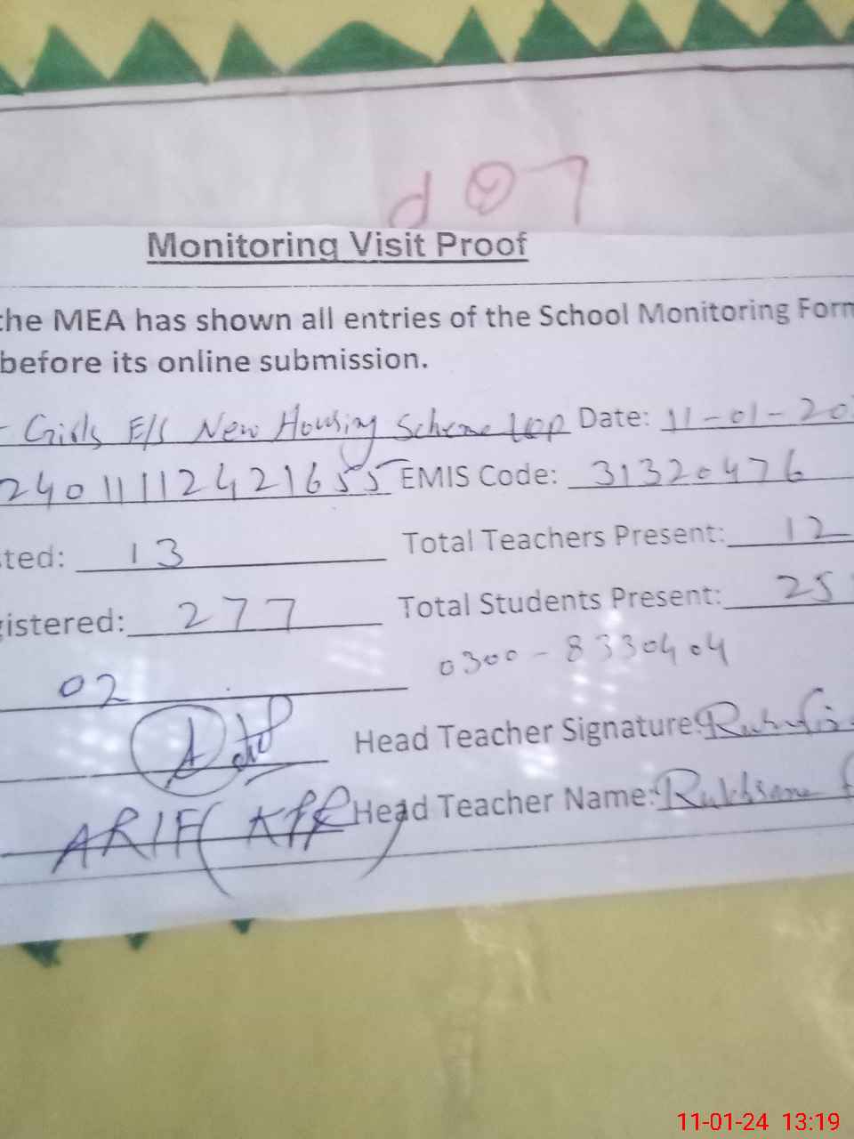 | Name: RU**** FI**** Designation: (School Headmaster's/Headmistress's) S.S.T.(Gen) Phone/Cell Number: 03**** |