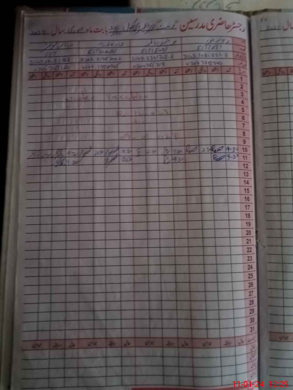 | CNIC | Full Name | Designation | R/C | Absence During Last Calender Month |