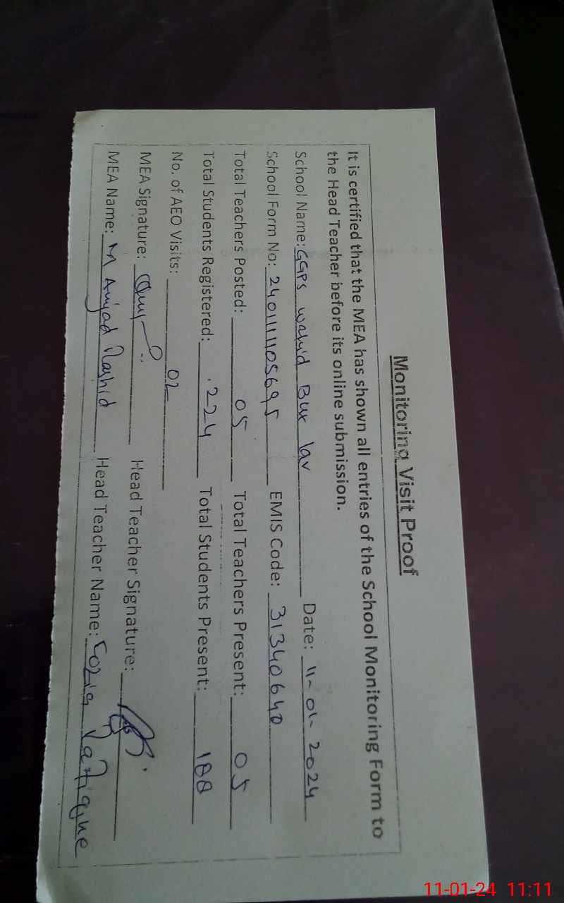| EMIS Code: 31340640 | Name of School: GGPS WIHID BUX LAR | |||