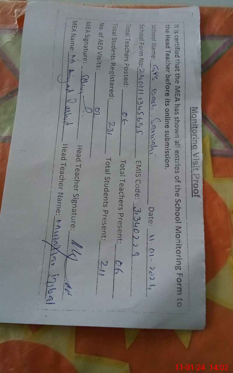 | EMIS Code: 31340229 | Name of School: GPS BASTI SARWAHI | |||