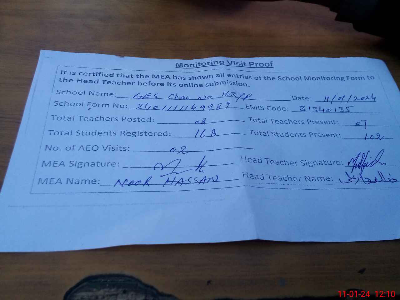 | EMIS Code: 31340135 | Name of School: GES CHAK NO 163/P | |||