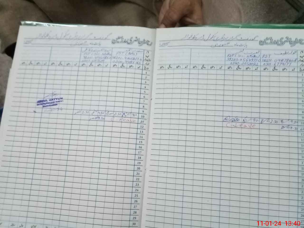 | CNIC | Full Name | Designation | R/C | Absence During Last Calender Month |