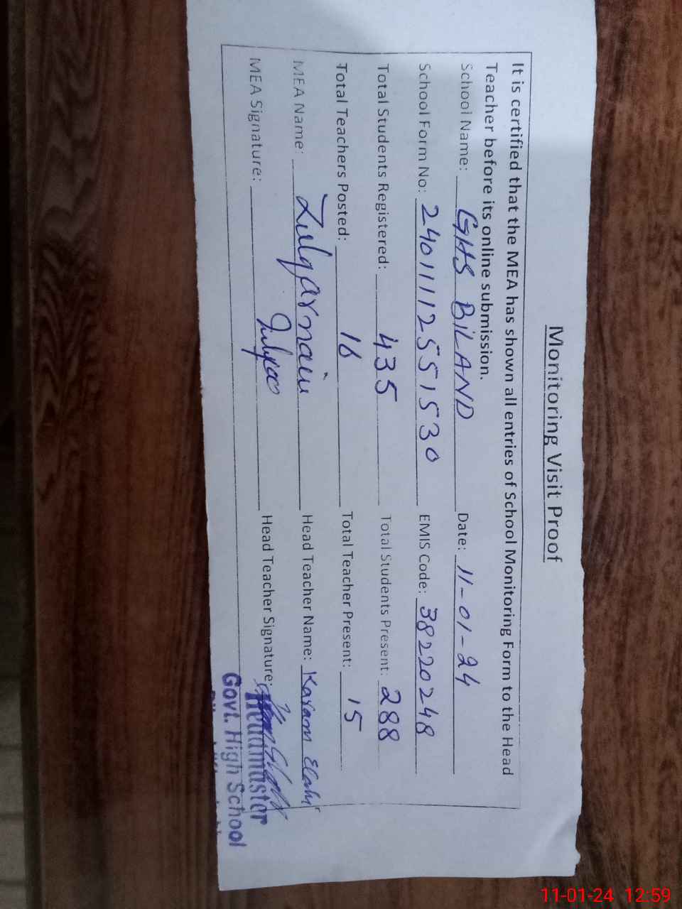 | EMIS Code: 38220248 | Name of School: GHS BILAND | |||