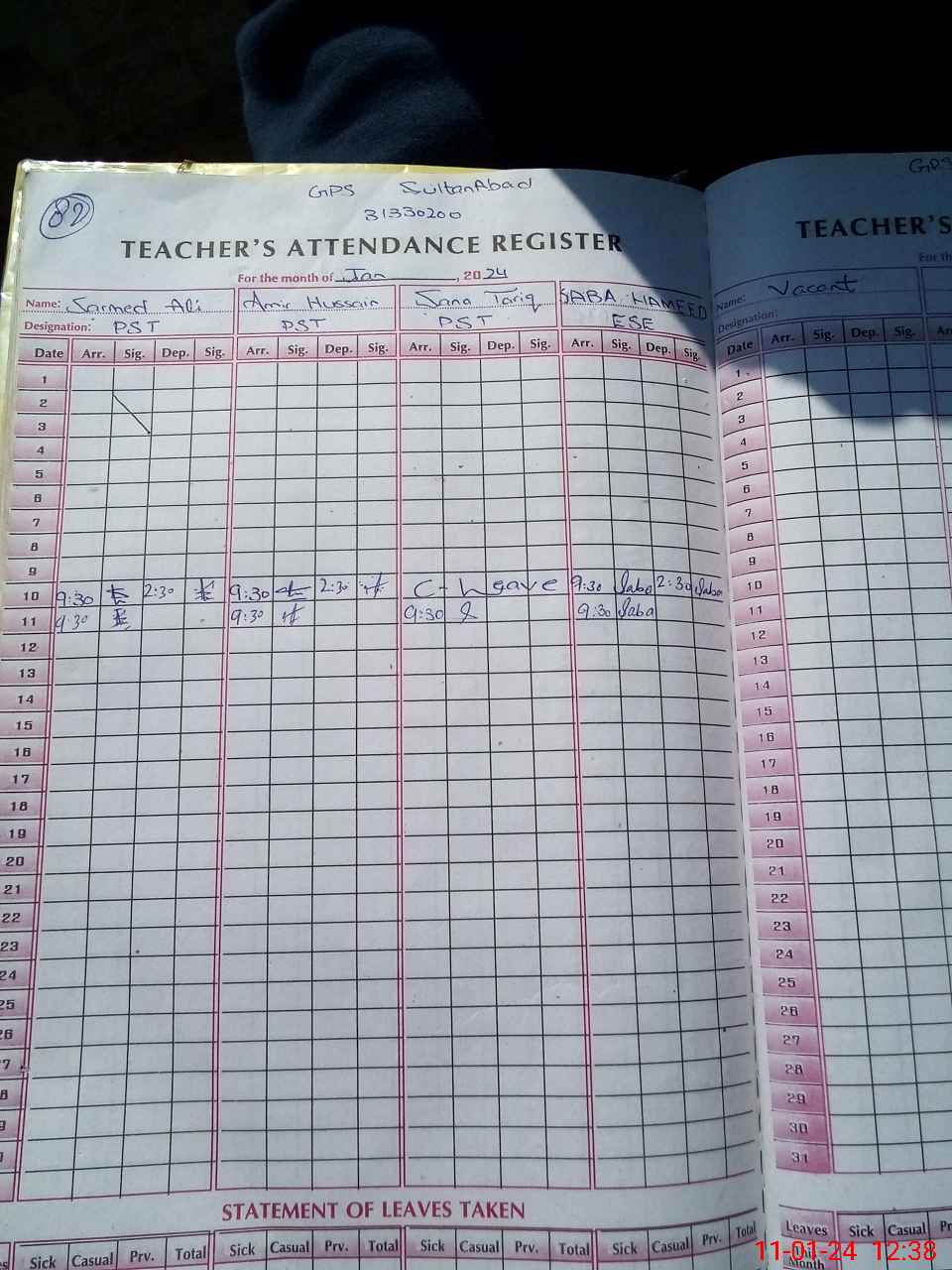 | Name: Se**** Al**** Designation: (School Headmaster's/Headmistress's) PST/PTC/JV Phone/Cell Number: 03**** |