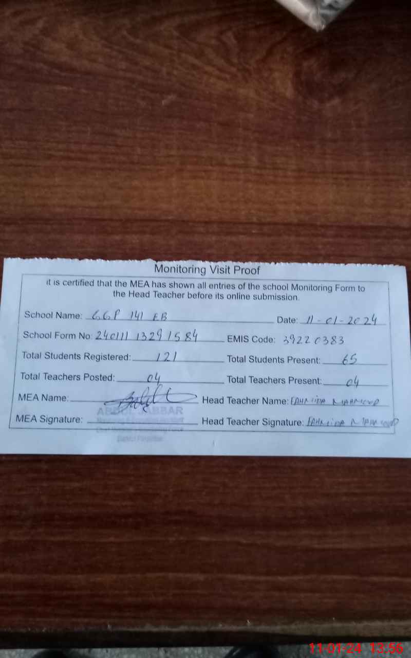 | EMIS Code: 39220383 | Name of School: GGPS 141 EB TEH ARIFWALA | |||