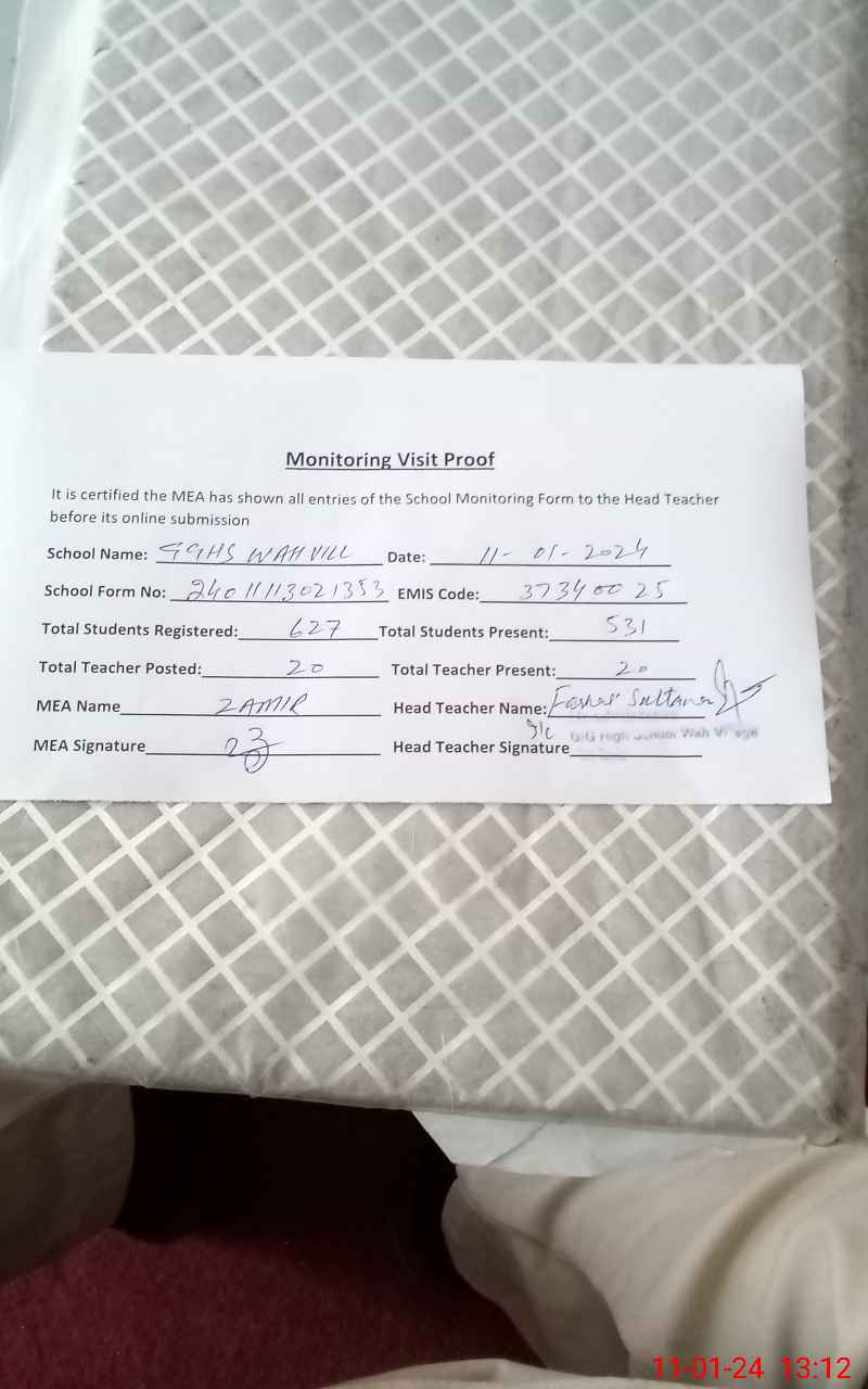 | Attendance Register | Head Teacher | MEA with School | Visit Proof |