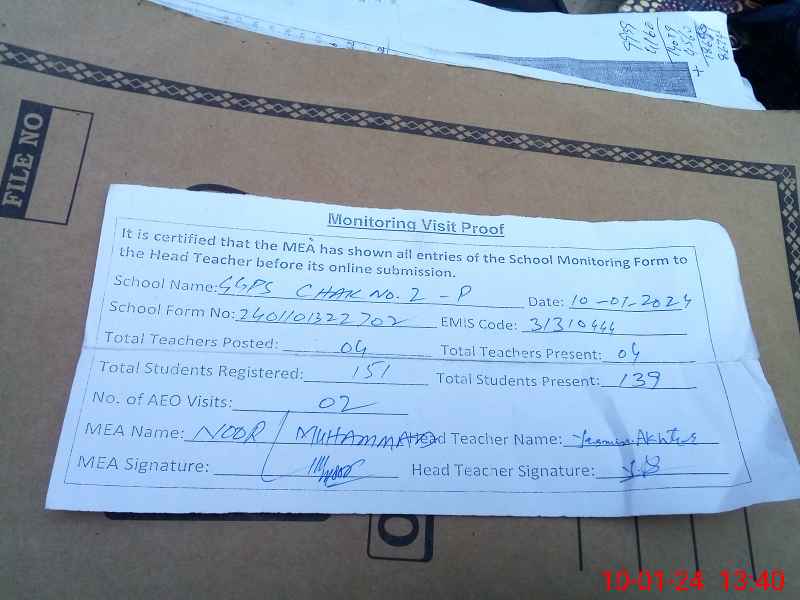 | EMIS Code: 31310444 | Name of School: GGPS CHAK NO. 2/P | |||
