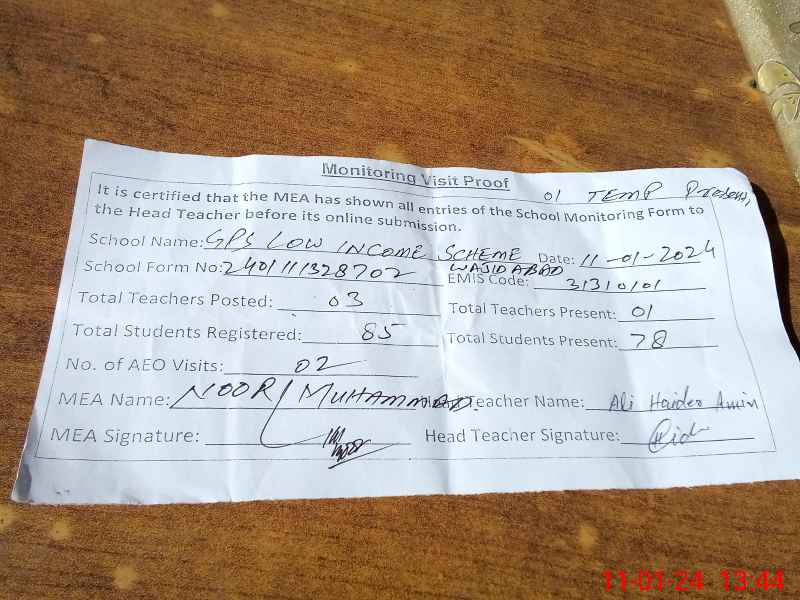 | EMIS Code: 31310101 | Name of School: GPS LOW INCOME SCHEME BASTI WAJID ABAD | |||