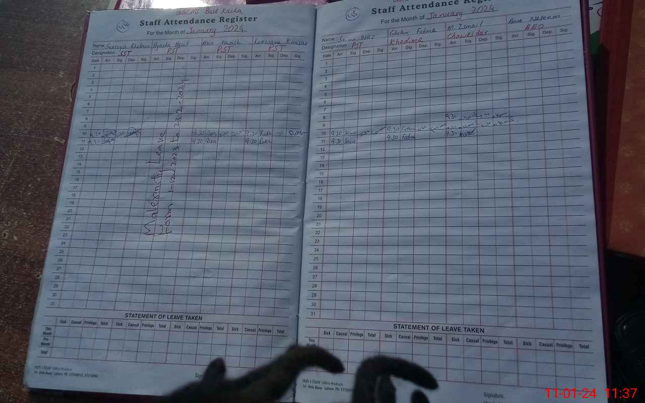 | Leave | Duty | Absent | Maternity | Medical | Ex- Pak |