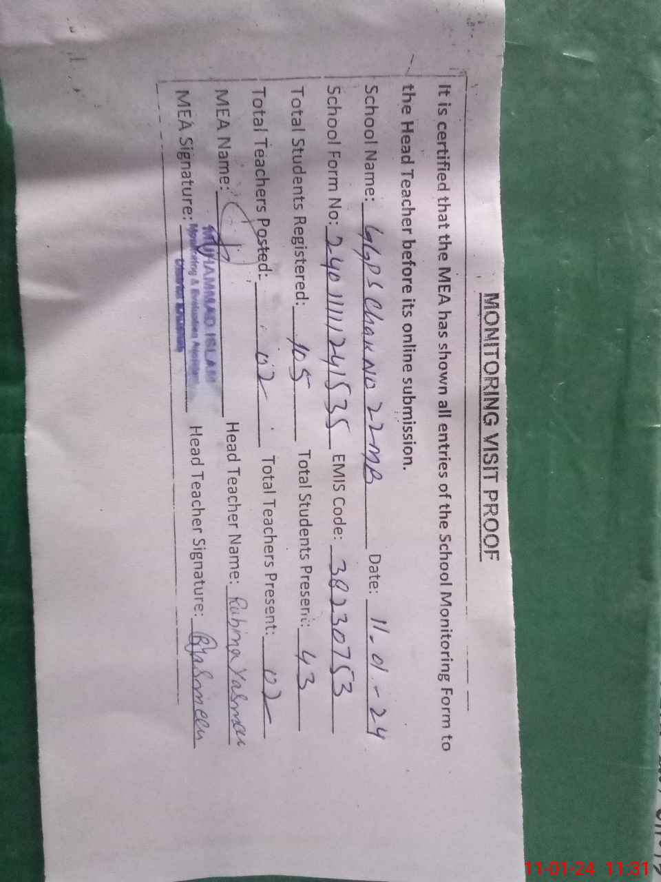| EMIS Code: 38230753 | Name of School: GGPS CHAK NO 22 MB | |||