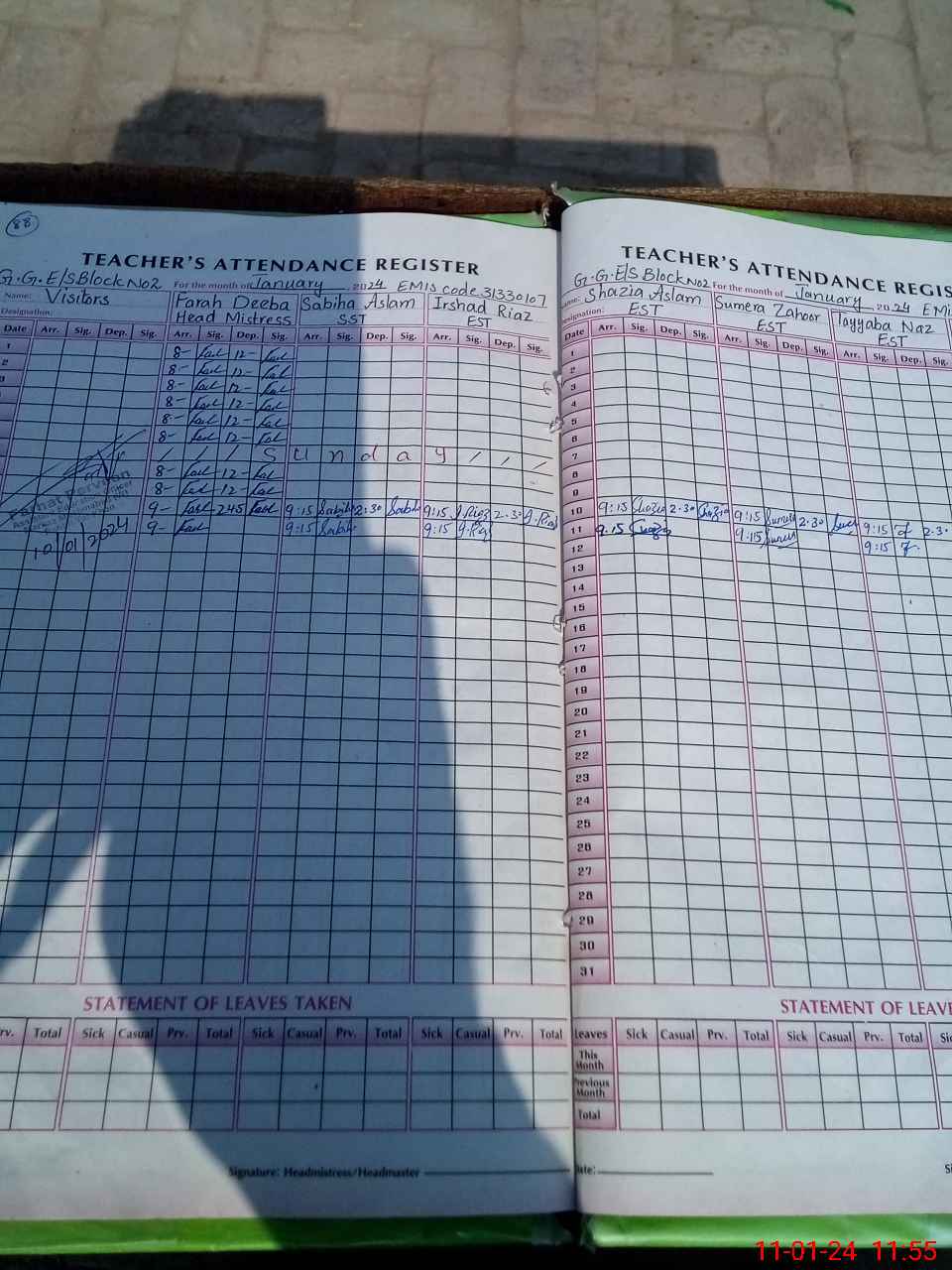 | No. of Students Present - Male | 9 | 0 | 11 | 9 | 6 | 11 | 10 | 1 | 0 | 0 | 0 | 57 | ||||