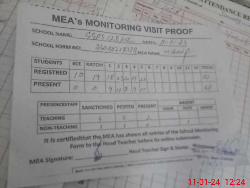 | Attendance Register | Head Teacher | MEA with School | Visit Proof |