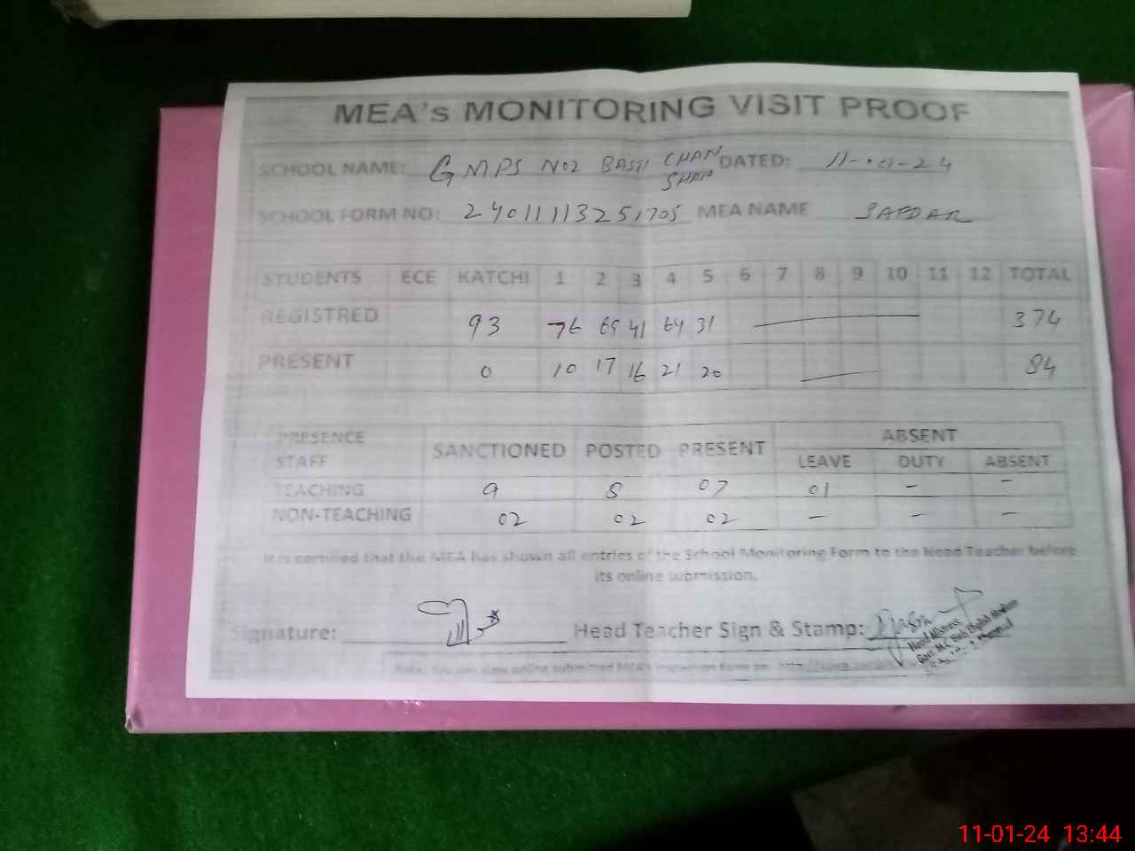 | Certified that this School was Inspected by the Undersigned MEA/DMO Today and the Information Stated Above is as Per Record. | |||||