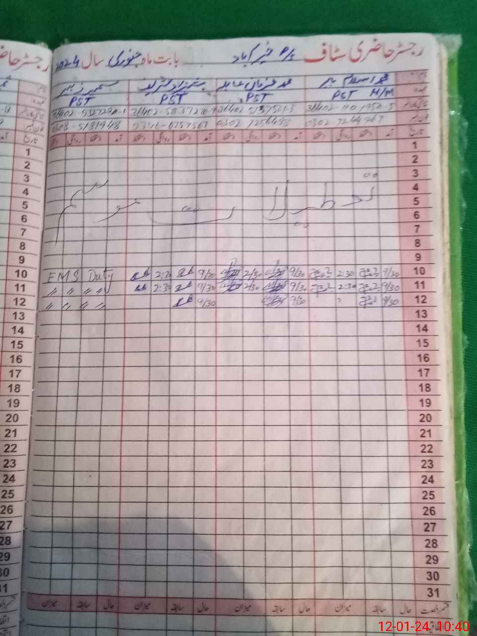 | CNIC | Full Name | Designation | R/C | Absence During Last Calender Month |