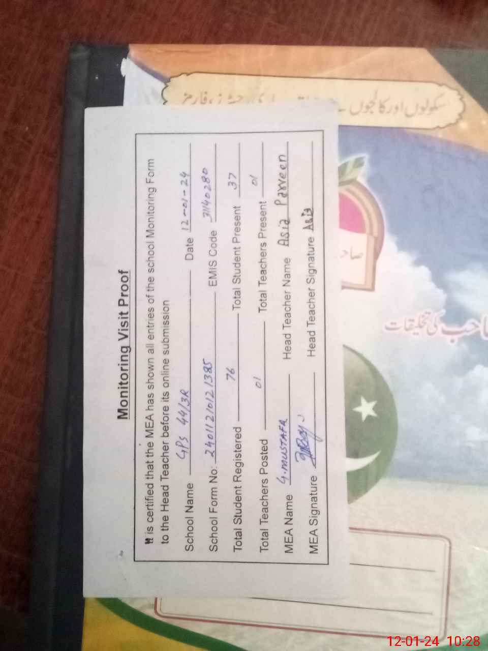 | EMIS Code: 31140280 | Name of School: GPS CHAK NO.44/3-R | |||