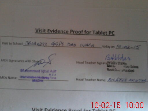 | Certified that this School was Inspected by the Undersigned MEA/DMO Today and the Information Stated Above is as Per Record. | |||||