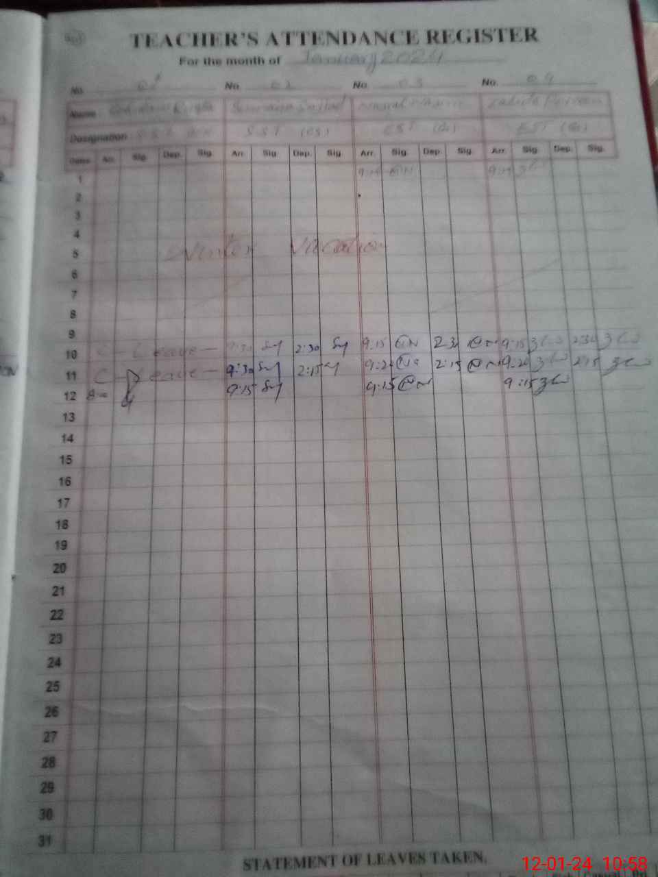 | No. of Students Present - Male | 0 | 0 | 0 | 0 | 0 | 0 | 0 | 0 | 0 | 0 | 0 | 0 | 0 | 0 | ||