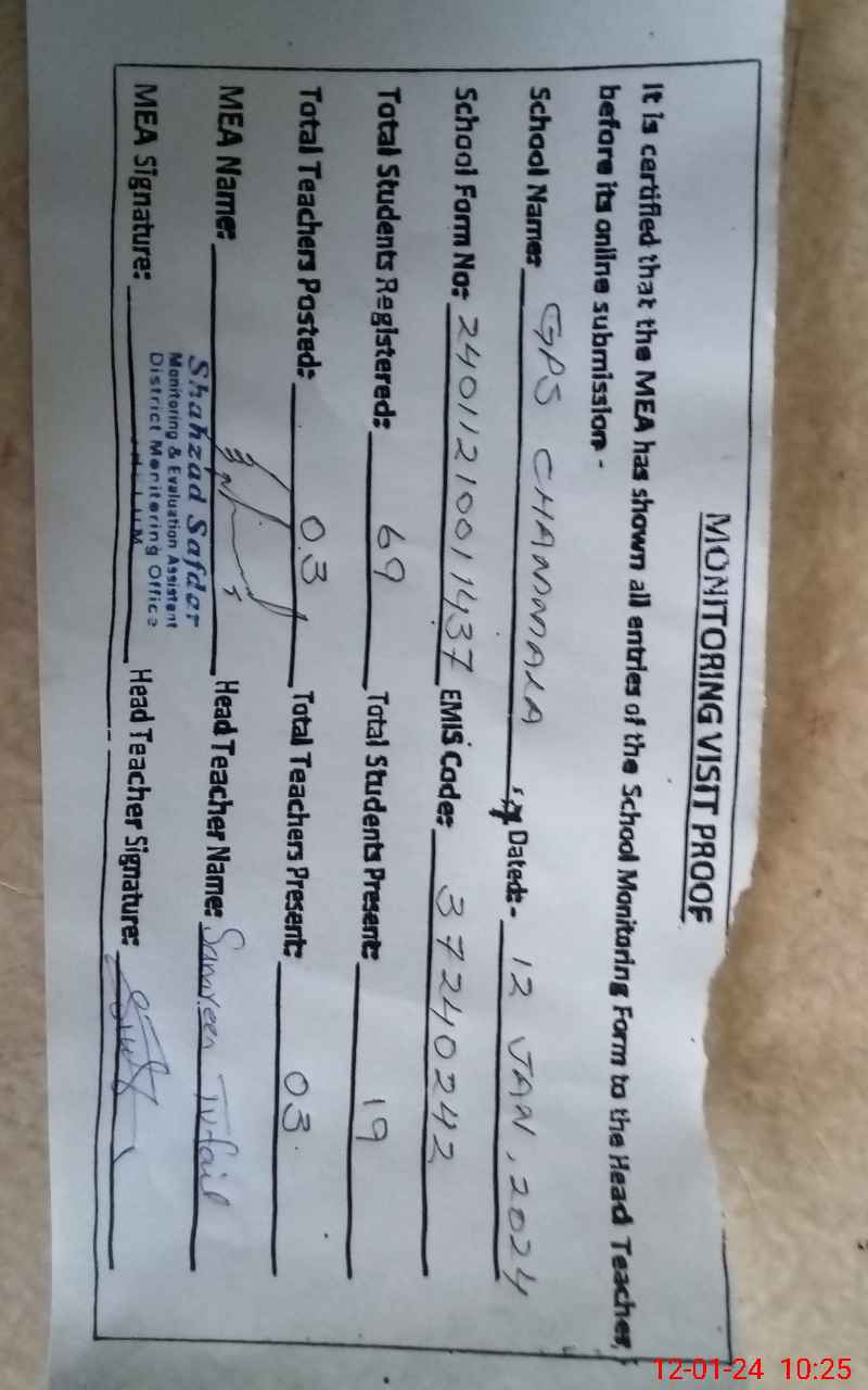 | EMIS Code: 37240242 | Name of School: GPS CHAMMALA | |||