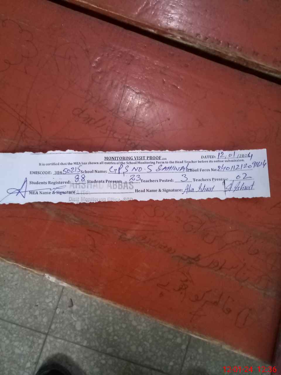 | EMIS Code: 38450215 | Name of School: GPS NO.5 SAHIWAL | |||
