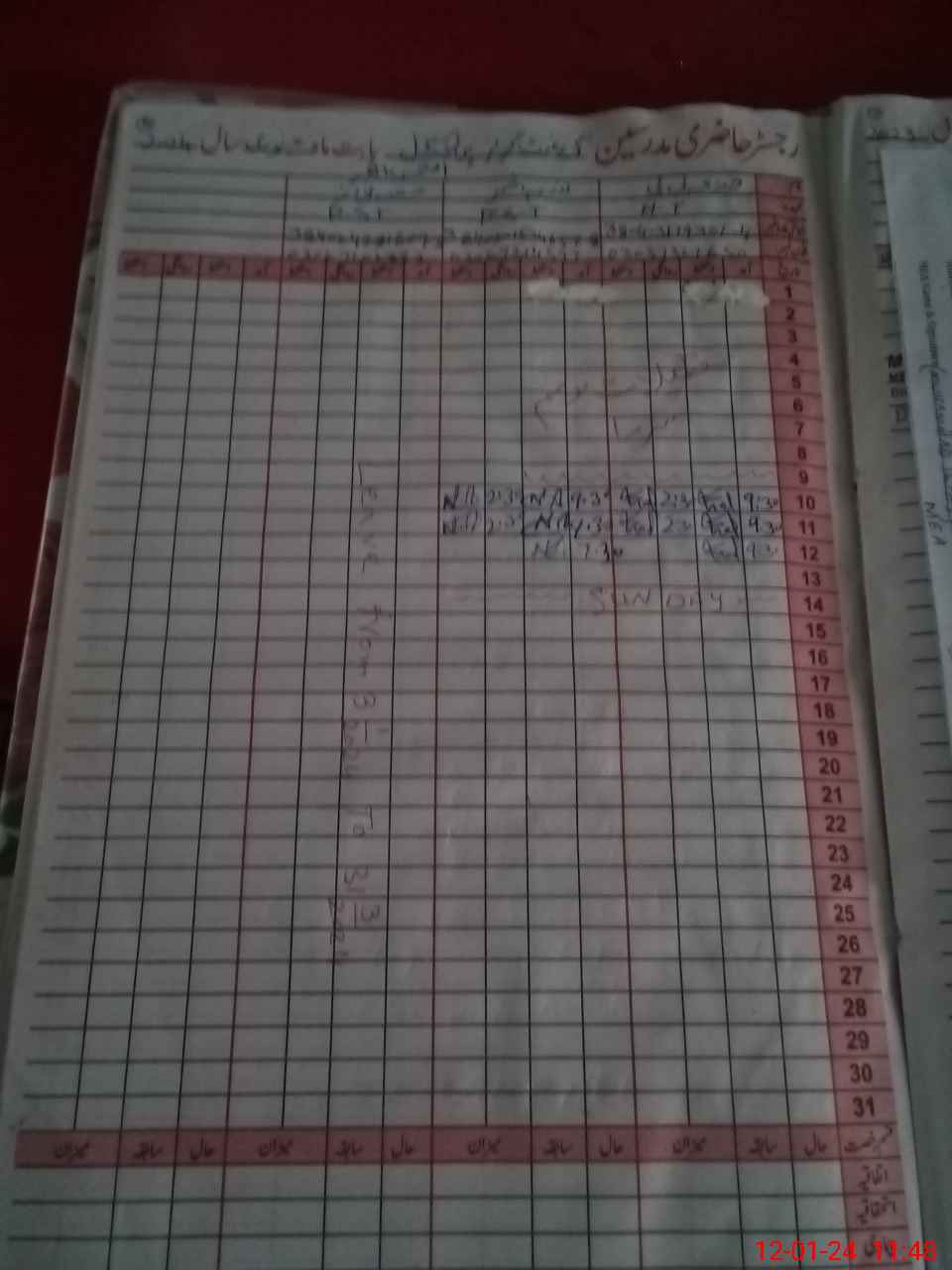 | CNIC | Full Name | Designation | R/C | Absence During Last Calender Month |