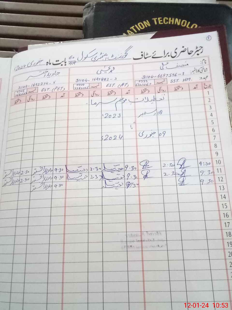 | Name: MU**** AL**** Designation: (School Headmaster's/Headmistress's) S.S.T.(Science) Phone/Cell Number: 03**** |