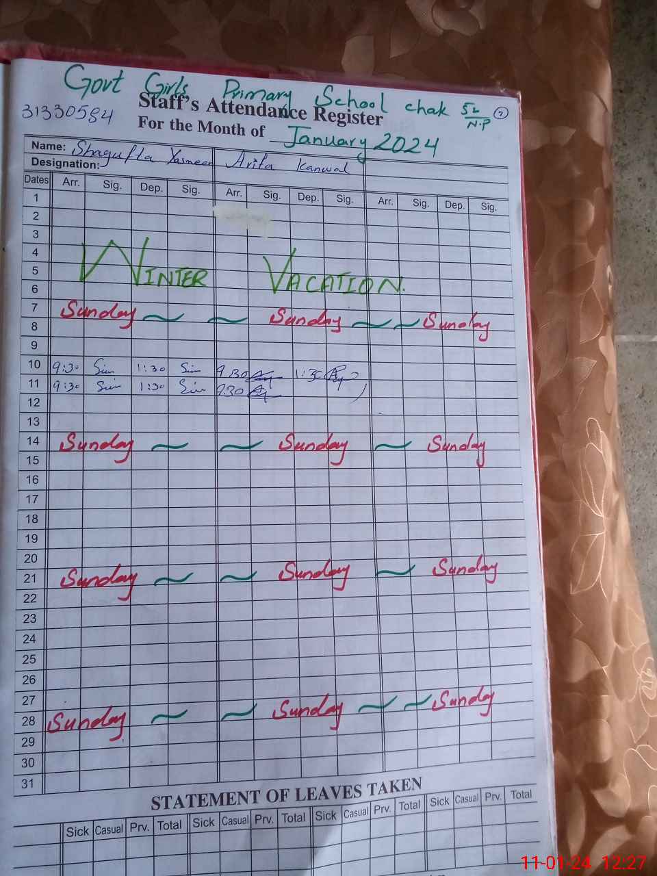 | Name: Sh**** Ya**** Designation: (School Headmaster's/Headmistress's) PST Phone/Cell Number: 03**** |