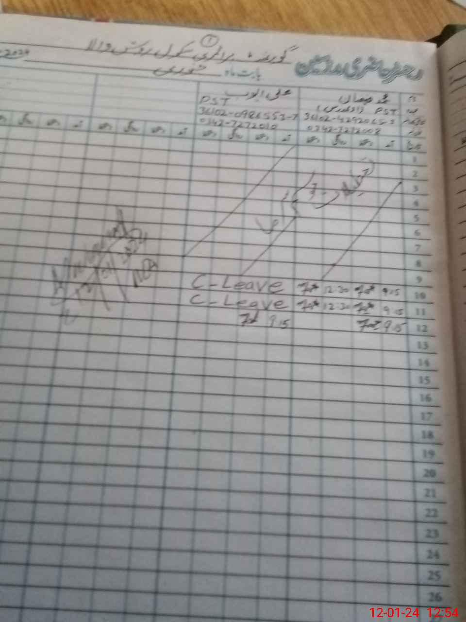 | CNIC | Full Name | Designation | R/C | Absence during last cal. month |