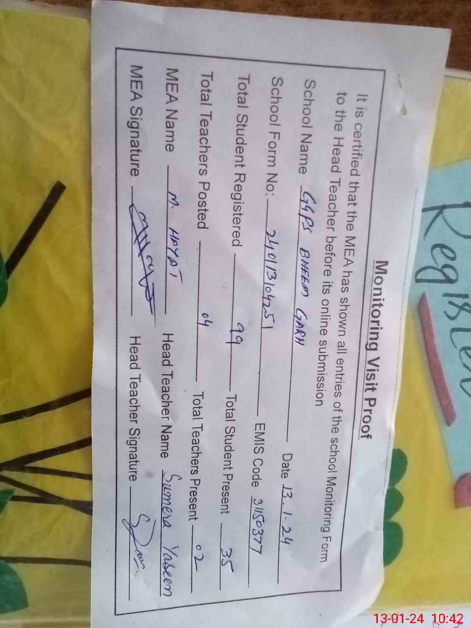 | EMIS Code: 31150377 | Name of School: GGPS BHEEM GARH | |||