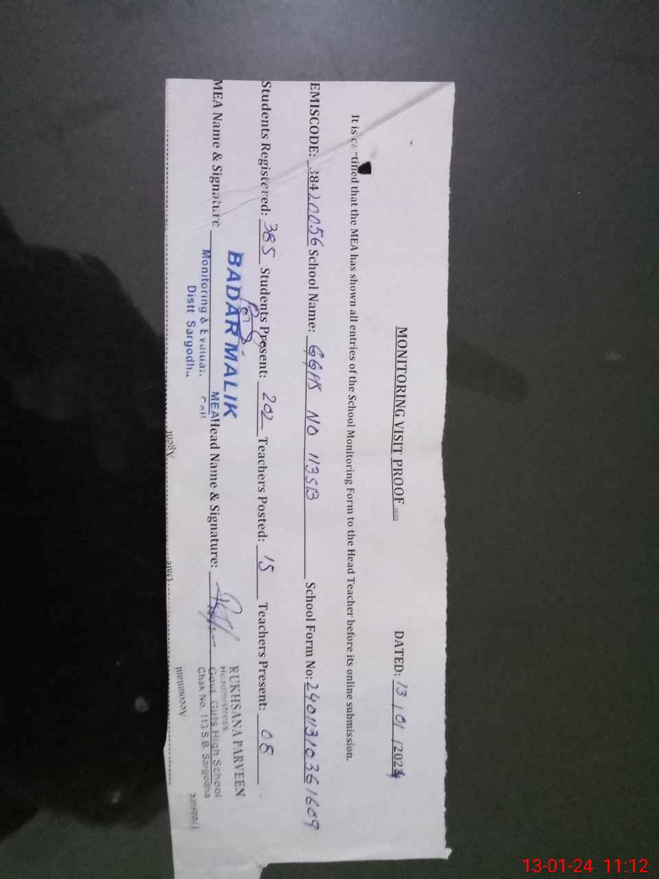 | EMIS Code: 38420056 | Name of School: GGHS CHAK NO.113 SB | |||