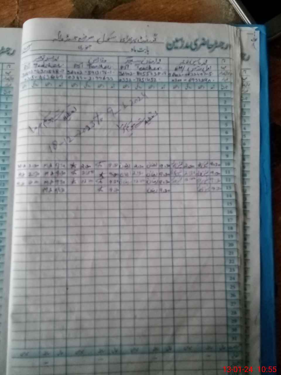 | CNIC | Full Name | Designation | R/C | Absence During Last Calender Month |
