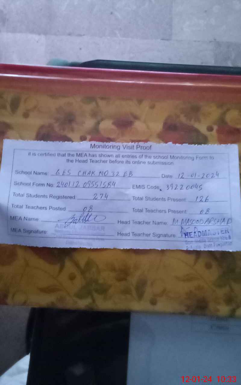 | EMIS Code: 39220045 | Name of School: GES CHAK NO. 32 / EB | |||