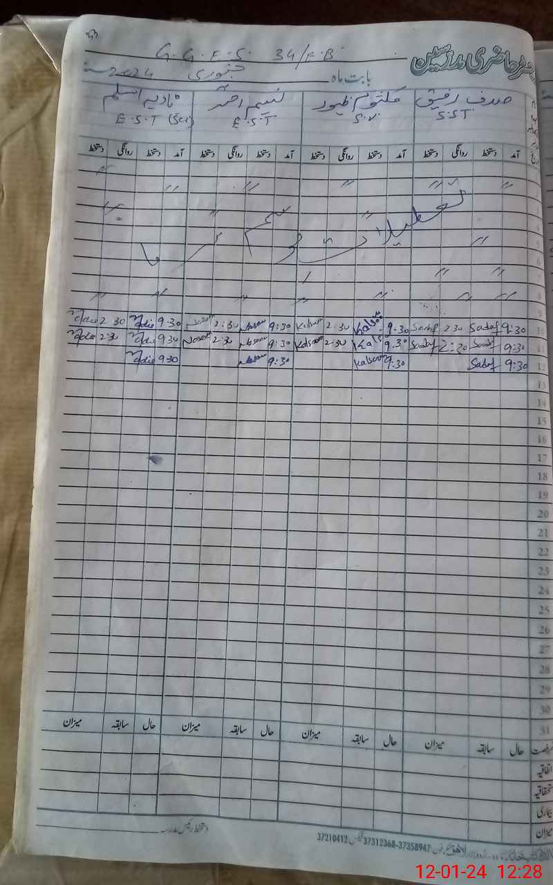 | Name: SA**** RA**** Designation: (School Headmaster's/Headmistress's) S.S.T.(GENERAL) Phone/Cell Number: 03**** |