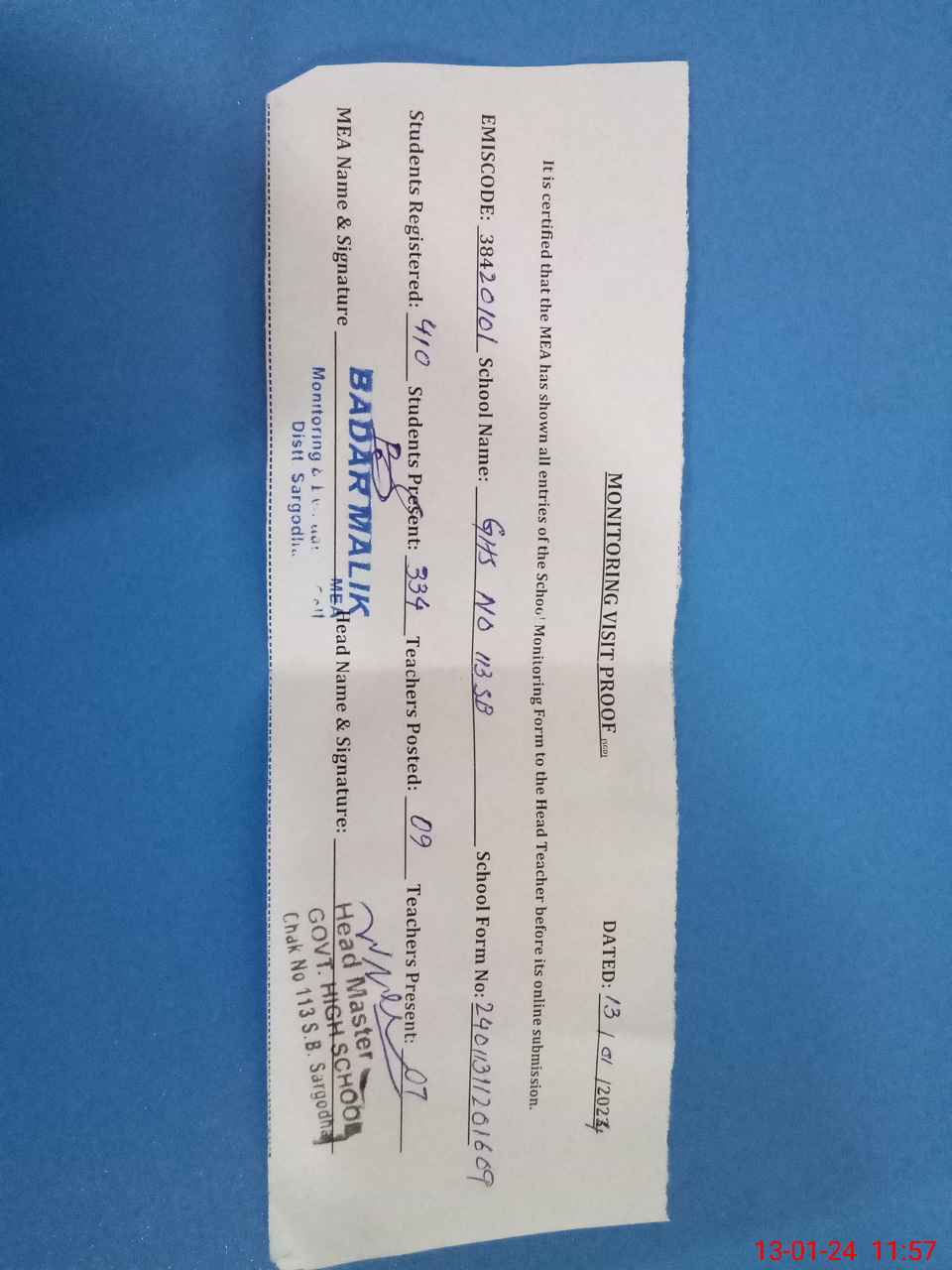 | EMIS Code: 38420101 | Name of School: GHS CHAK NO.113 SB | |||