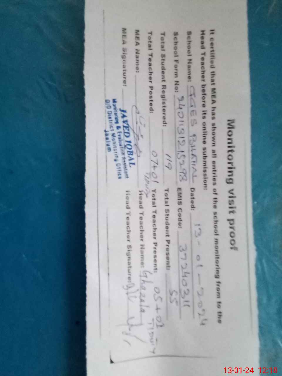 | EMIS Code: 37240311 | Name of School: GGES BHATIAL | |||