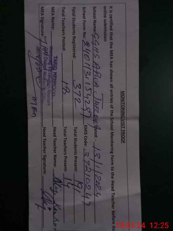 | EMIS Code: 37210247 | Name of School: GGHS APWA JHELUM | |||