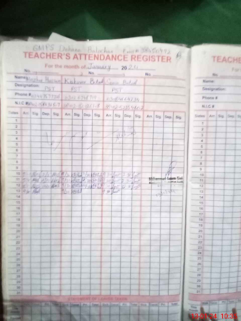 | Name: SA**** BA**** Designation: (School Headmaster's/Headmistress's) PST Phone/Cell Number: 03**** |