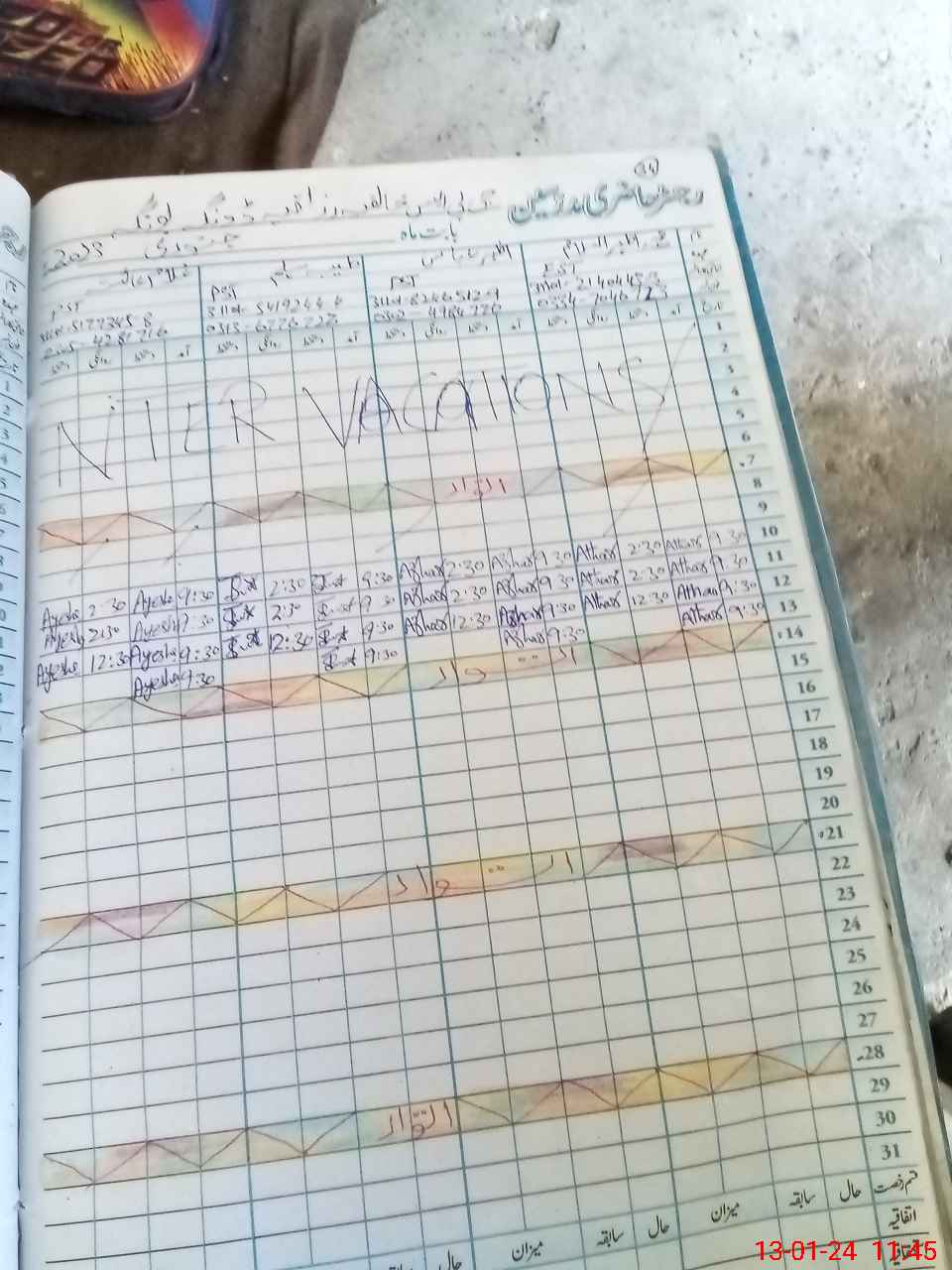 | CNIC | Full Name | Designation | R/C | Absence During Last Calender Month |