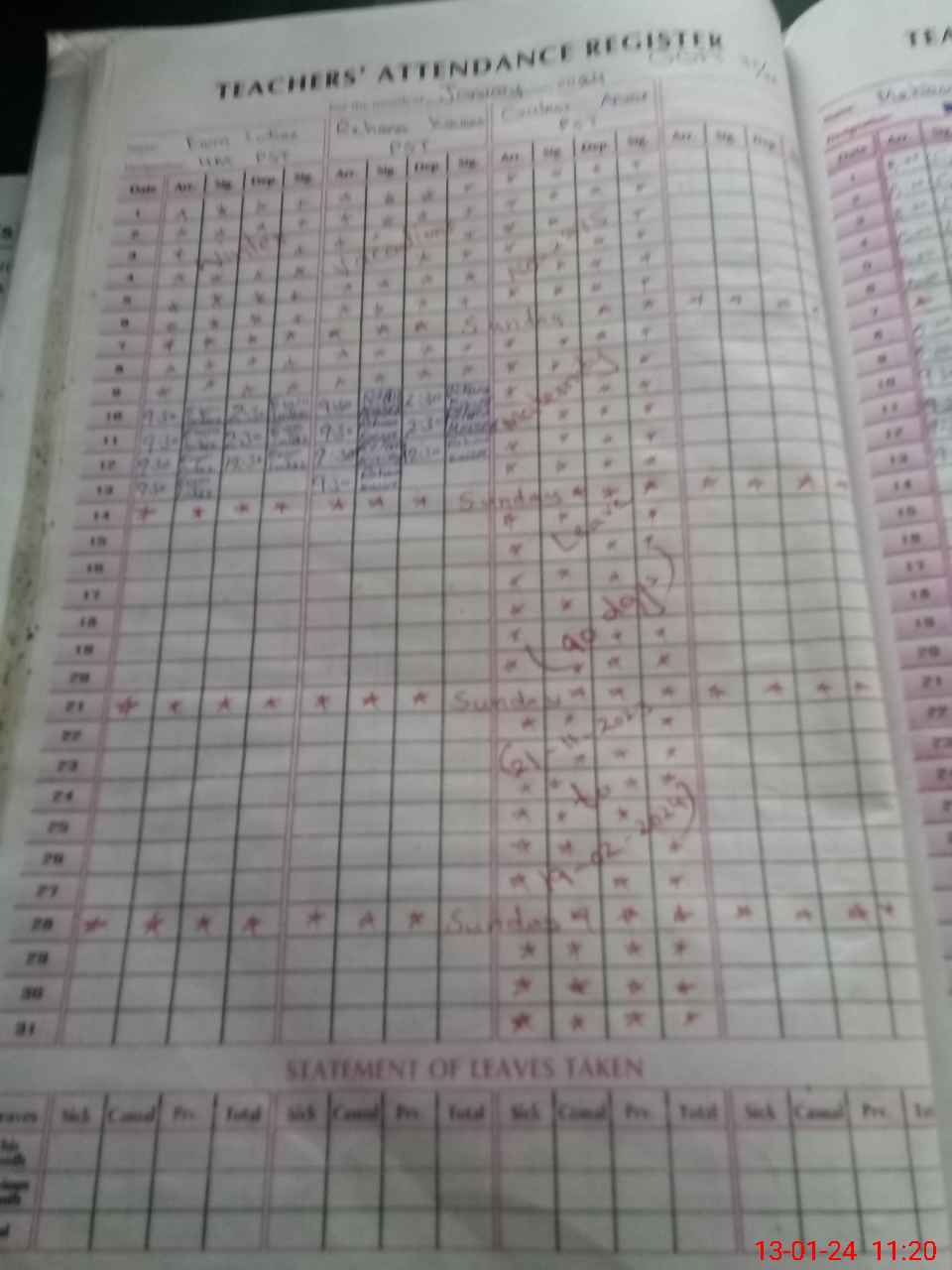 | Leave | Duty | Absent | Maternity | Medical | Ex- Pak |