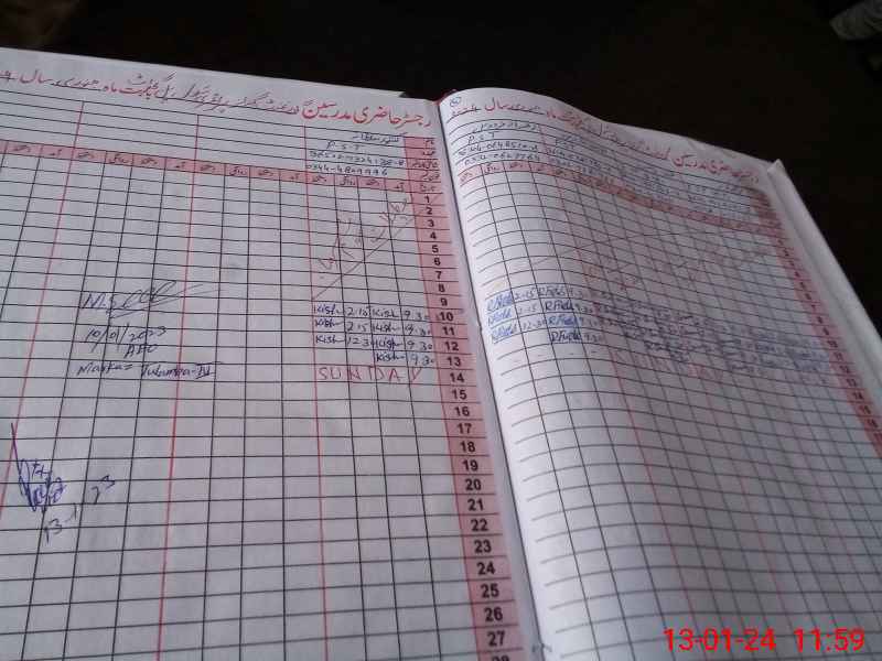 | CNIC | Full Name | Designation | R/C | Absence During Last Calender Month |