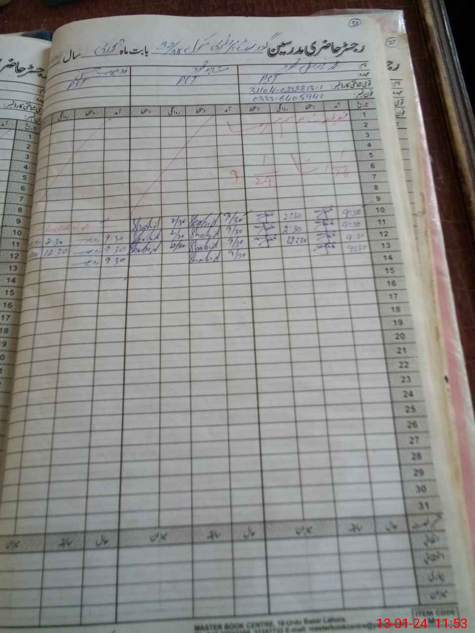| CNIC | Full Name | Designation | R/C | Absence During Last Calender Month |