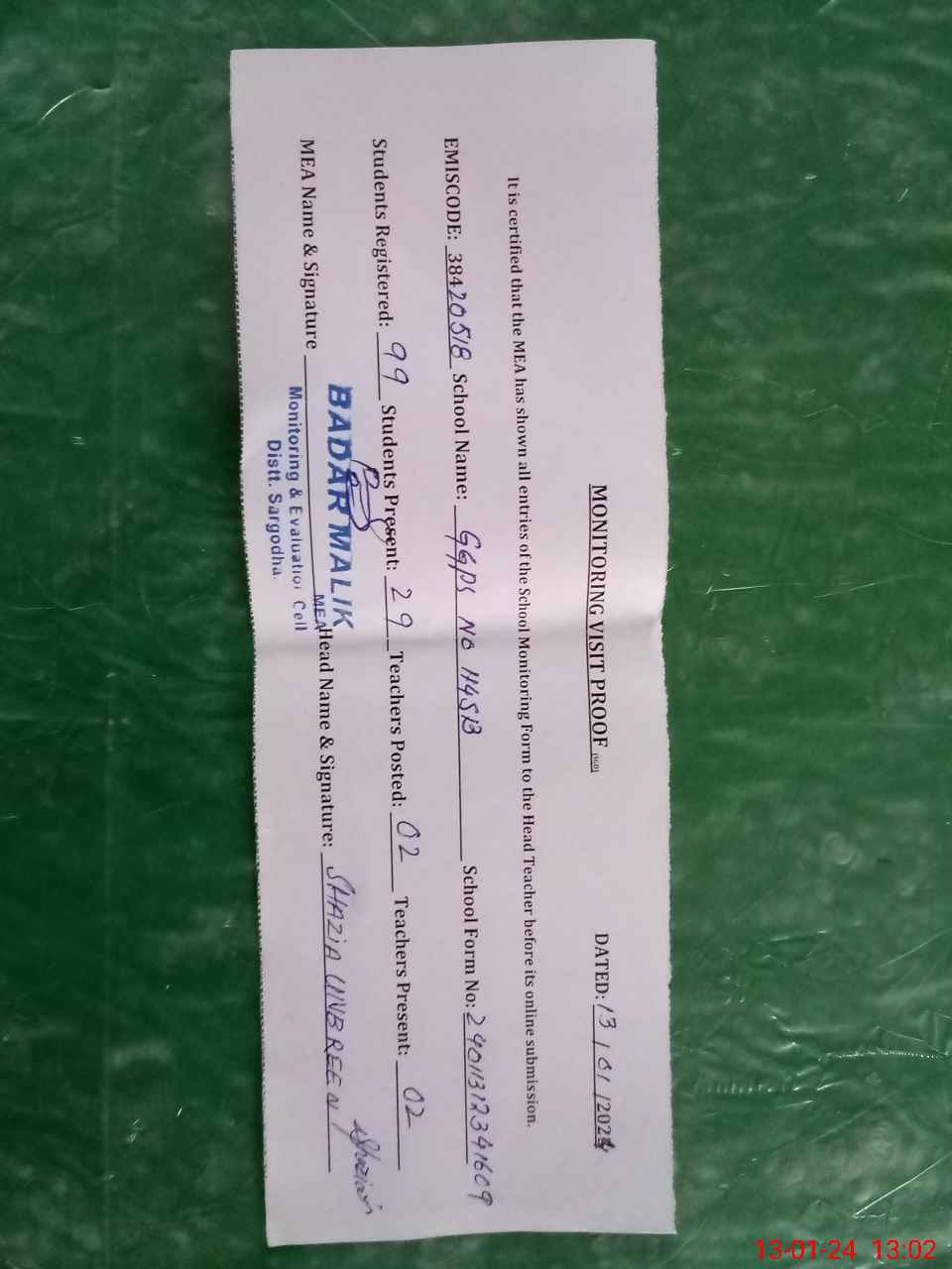 | EMIS Code: 38420518 | Name of School: GGPS CHAK NO.114 SB | |||
