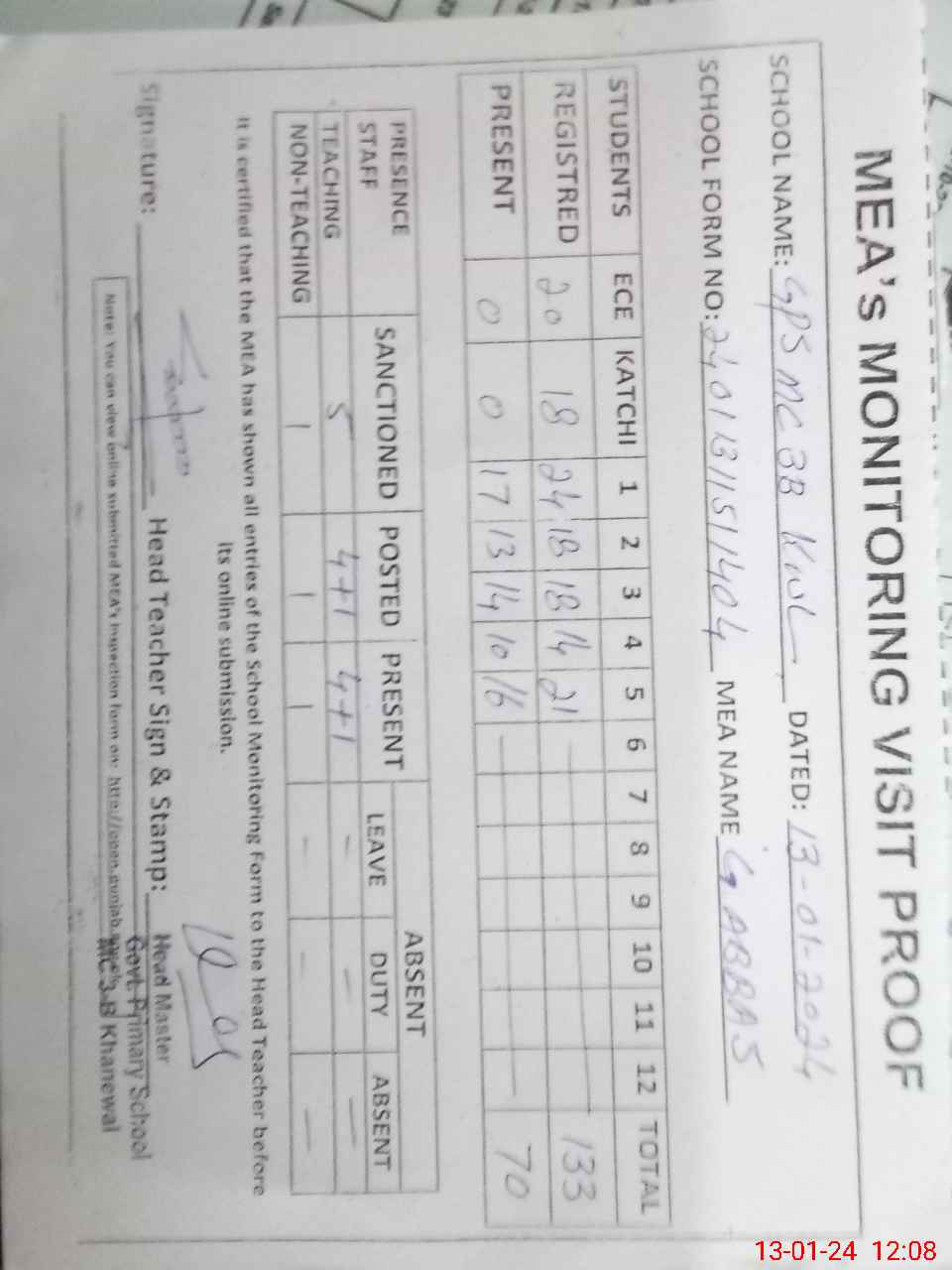 | EMIS Code: 36420636 | Name of School: GPS MC 3-B KHANEWAL | |||