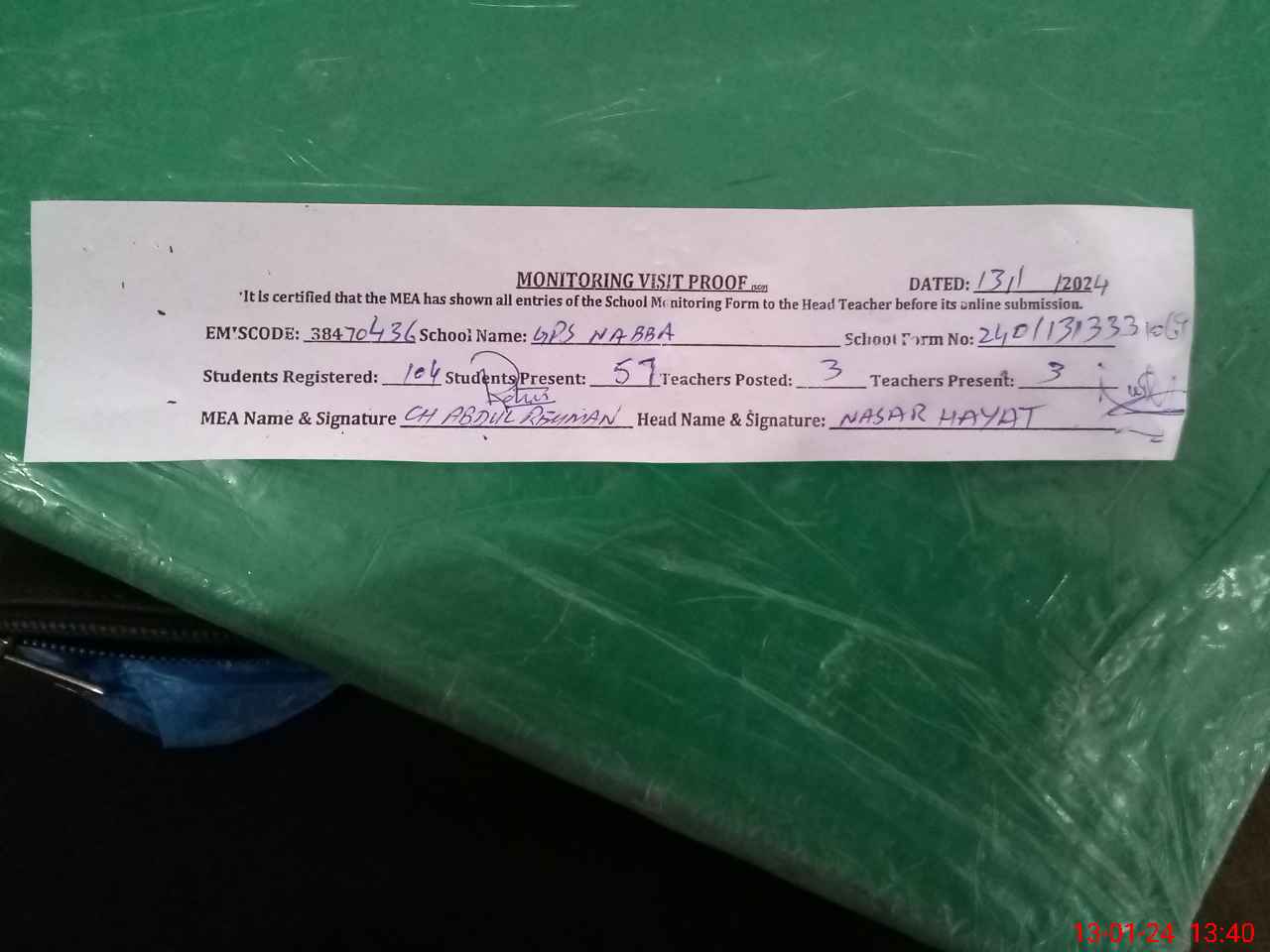 | EMIS Code: 38470436 | Name of School: GPS NABBA | |||