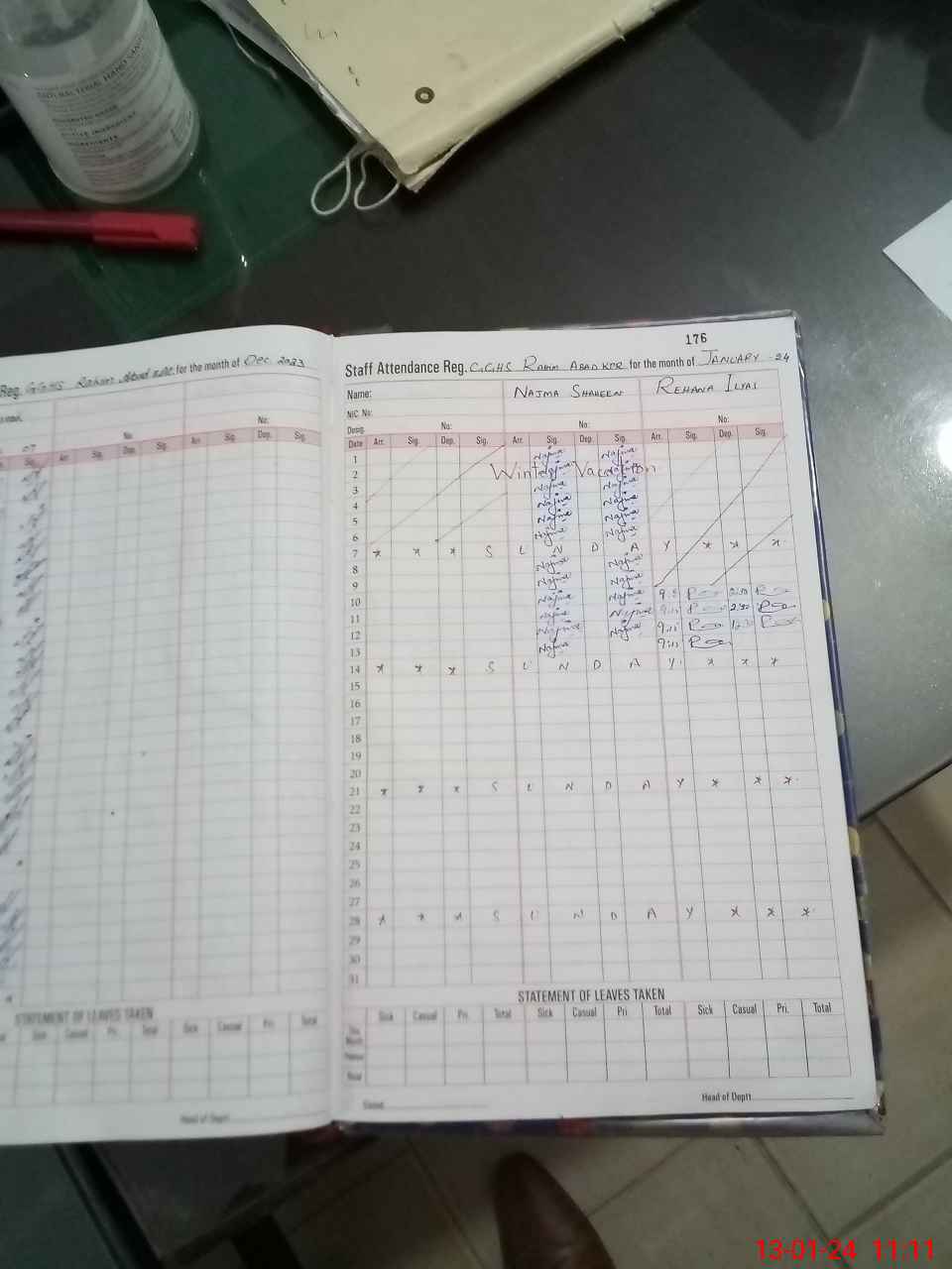 | Leave | Duty | Absent | Maternity | Medical | Ex- Pak |