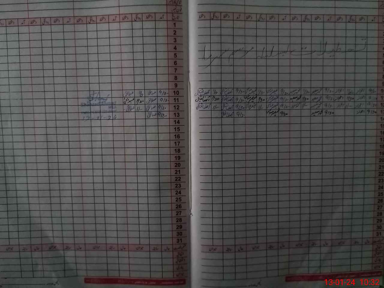 | CNIC | Full Name | Designation | R/C | Absence During Last Calender Month |