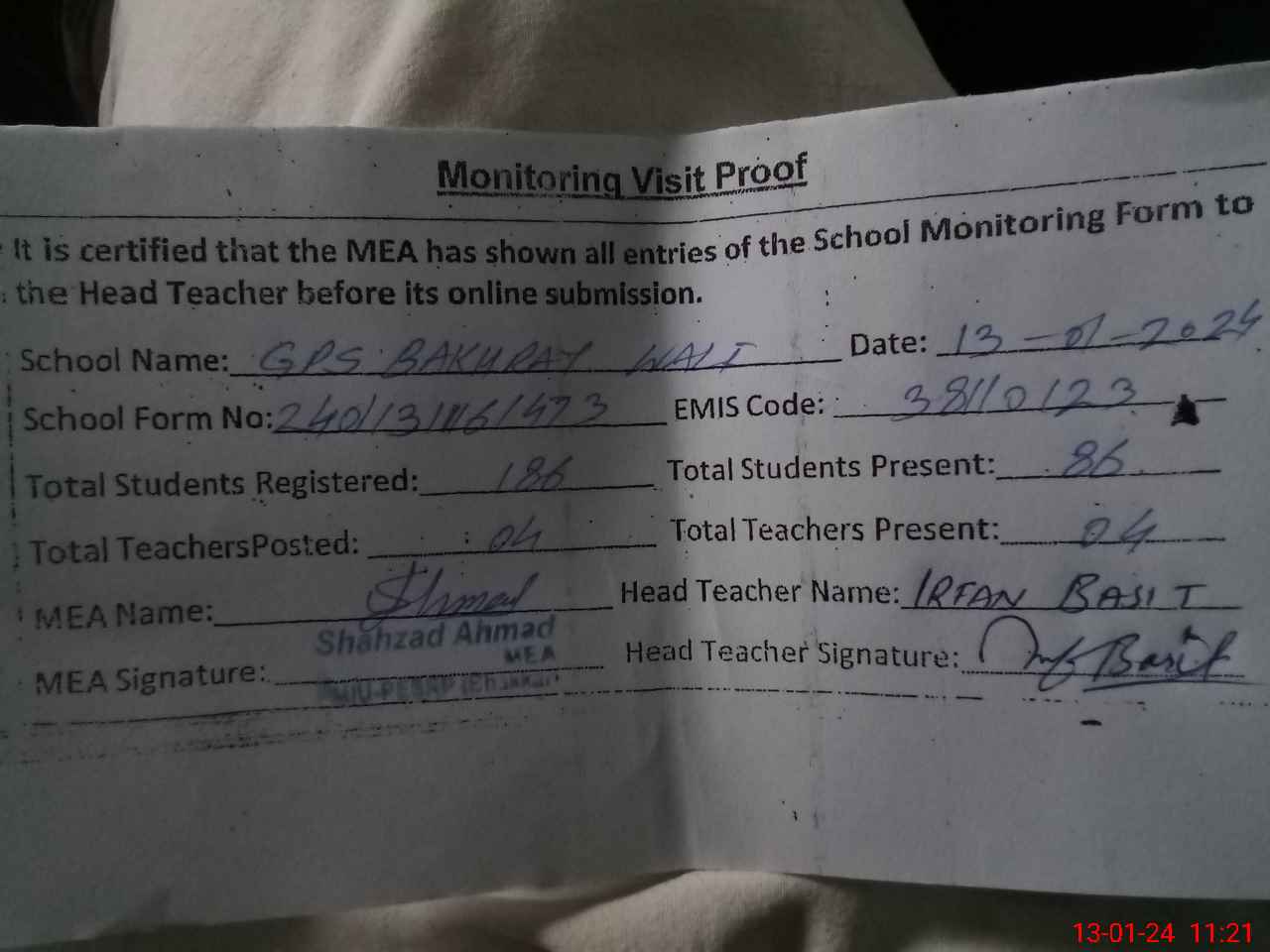 | EMIS Code: 38110123 | Name of School: GPS BAKHRAY WALI | |||