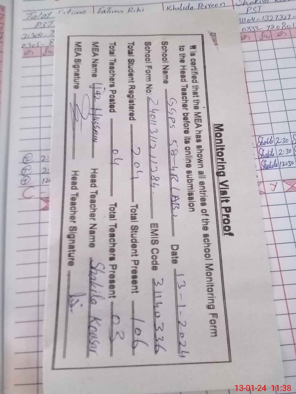 | Name: SH**** KO**** Designation: (School Headmaster's/Headmistress's) PST Phone/Cell Number: 03**** |