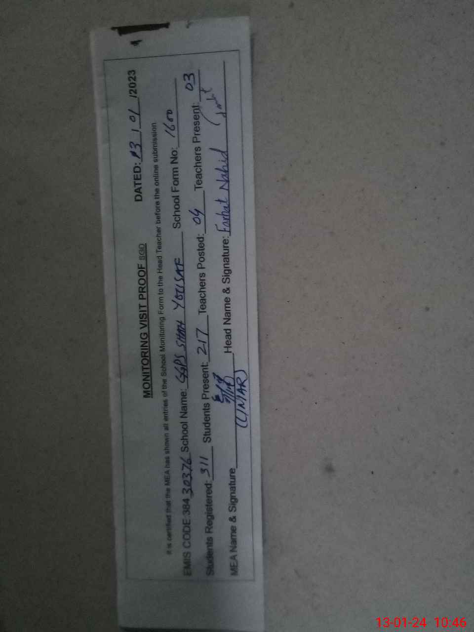 | EMIS Code: 38430376 | Name of School: GGPS SHAH YOUSAF | |||
