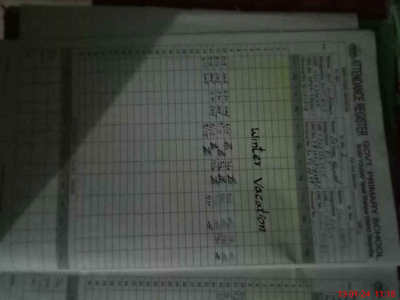 | Name: SA**** URRE**** Designation: (School Headmaster's/Headmistress's) PST Phone/Cell Number: 03**** |